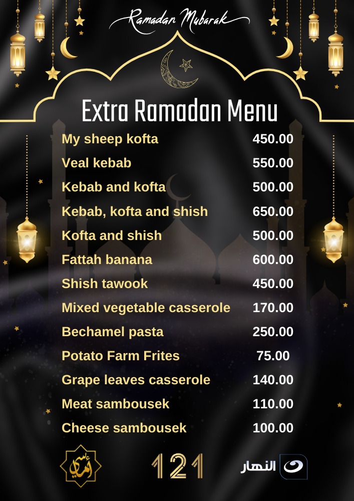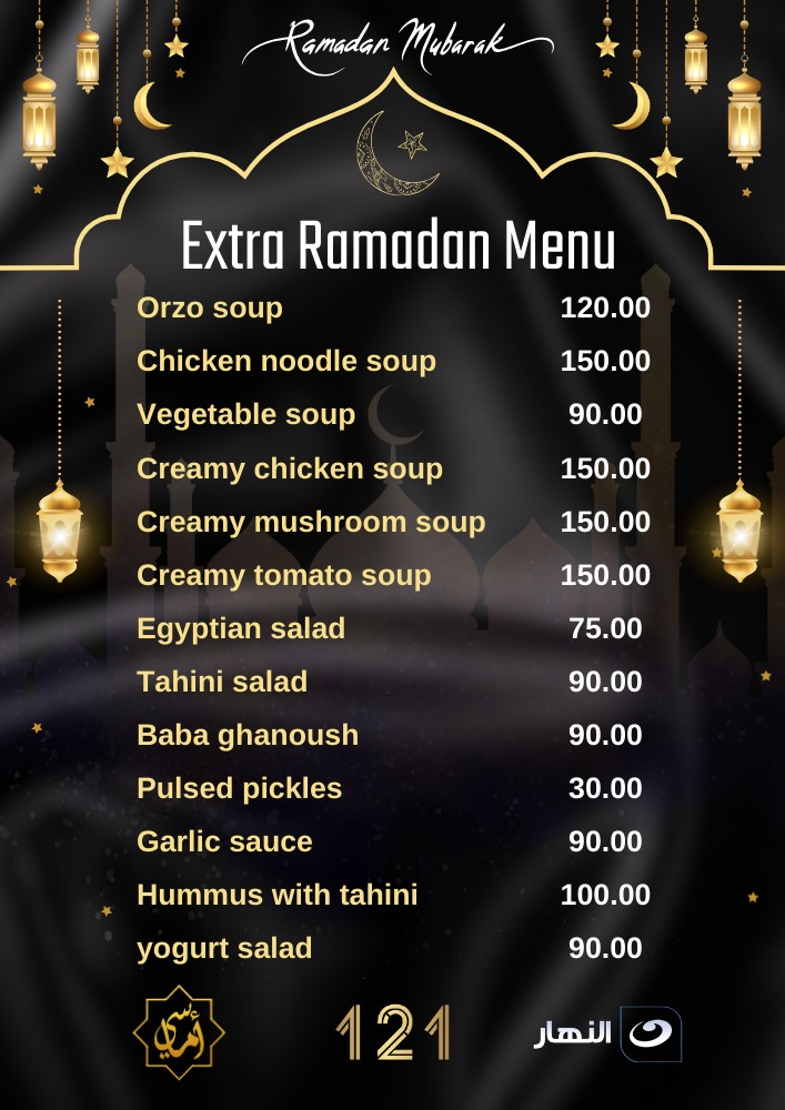 Restaurant 121n Nile wishes you a Happy Ramadan .